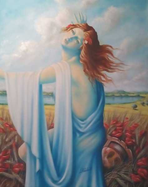 Questa osservazione unita al sentimento di appartenenza dei luoghi mi ha sempre ispirato nella mia espressione artistica. La mia tela ne e la prova tangibile, racconto di Kore Proserpina rapita da Ade, amata, come recita Ovidio nelle Metamorfosi al verso 395, ancora con la lacrima che scende sulla guancia...
