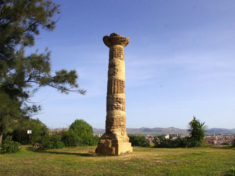 Verso nord si estendeva la zona sacra: oggi sono visibili solo i basamenti di tre templi. Del tempio C, o Athenaion, è rimasta in piedi una colonna in stile dorico, alta quasi 8 metri, che è uno dei simboli della città.