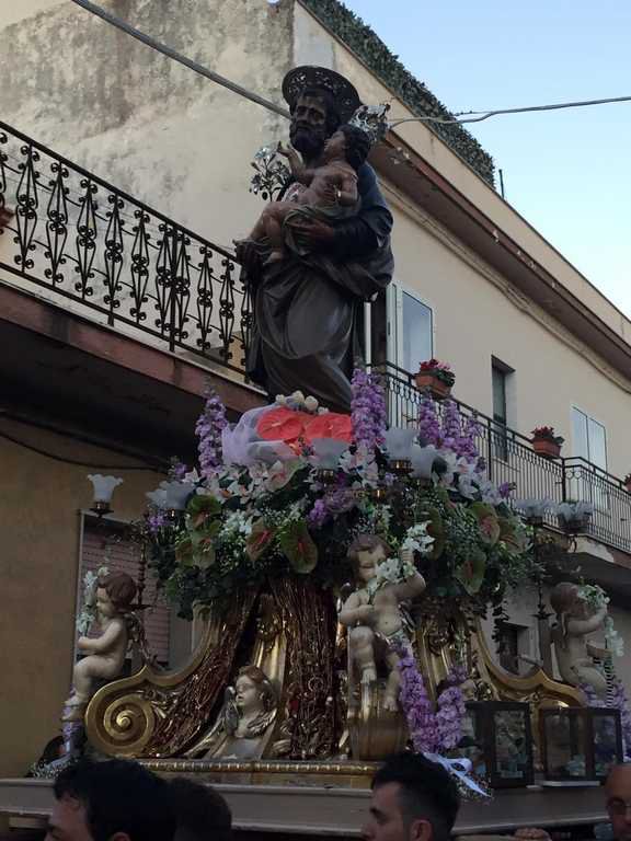 Dalla Chiesa Madre muove il corteo in onore del Patrono; la tradizione vuole che, alle tavole riccamente imbandite, venissero invitate tre persone povere, in rappresentanza della Sacra Famiglia.