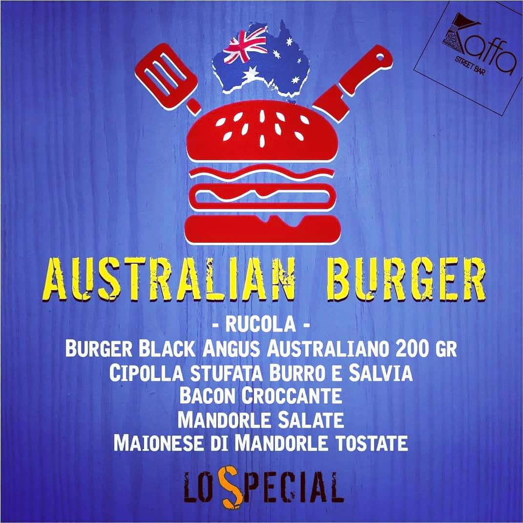 In occasione del primo evento di giugno, i ragazzi di Kaffa, propongono una simpatica, quanto divertente, sfida tra "Sicilia" e "Australia", delegando, sia ai numerosi clienti abituali che a chi vorrà godere per la prima volta della sua “arte culinaria”, il difficile compito di stabilire quale sia il più buono, Il nostrano “Sicily Burger” o l’oltre-oceanico “Australian Burger”.