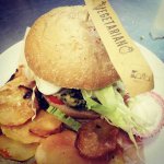 Burger della casa, zucca gialla grigliata, provola&bacon croccante, salsa BBQ al Whisky. Sia versione di Carne che Vegetariana!