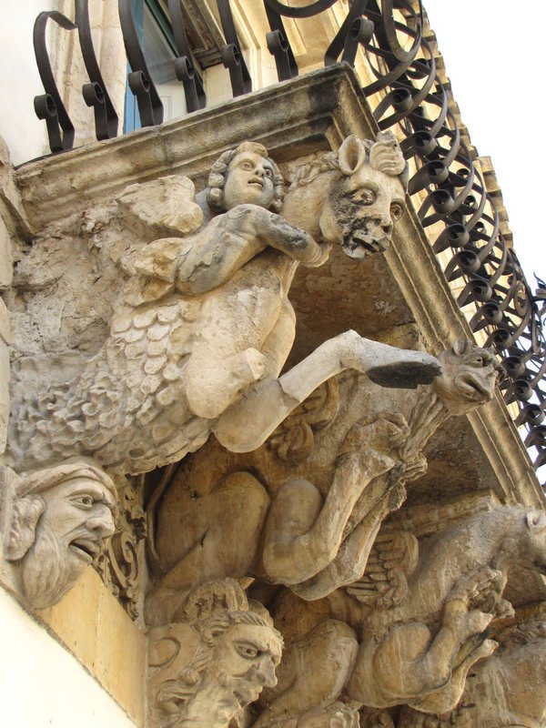 Particolari i balconi, con le loro panciute inferriate, sostenuti da mensoloni raffiguranti animali fantastici e mascheroni antropomorfi; anche gli archi di volta delle finestre sono decorati con volti grotteschi e spaventosi: figure così espressive e ricche di dettagli da sembrare vive.
